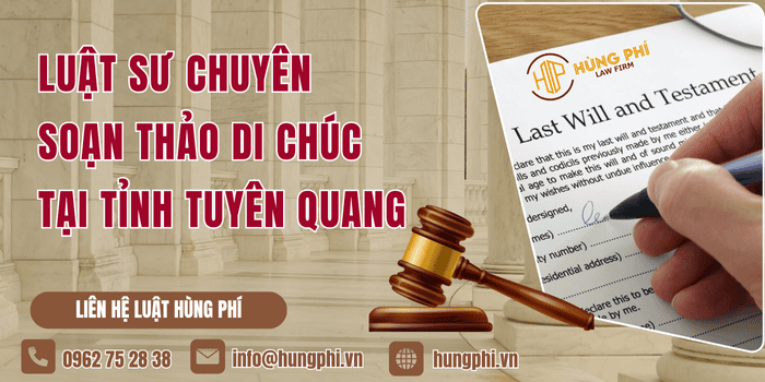 Hiện nay Công ty Luật Hùng Phí với đội ngũ luật sư giỏi tại Tỉnh Tuyên Quang có kiến thức toàn diện, am hiểu vững chắc pháp luật và có nhiều năm kinh nghiệm tư vấn, chuyên soạn thảo di chúc sẽ giúp Quý khách hàng đảm bảo tuyệt đối an toàn pháp lý của bản di chúc, đảm bảo quyền và lợi ích hợp pháp cho người được hưởng thừa kế theo di chúc.